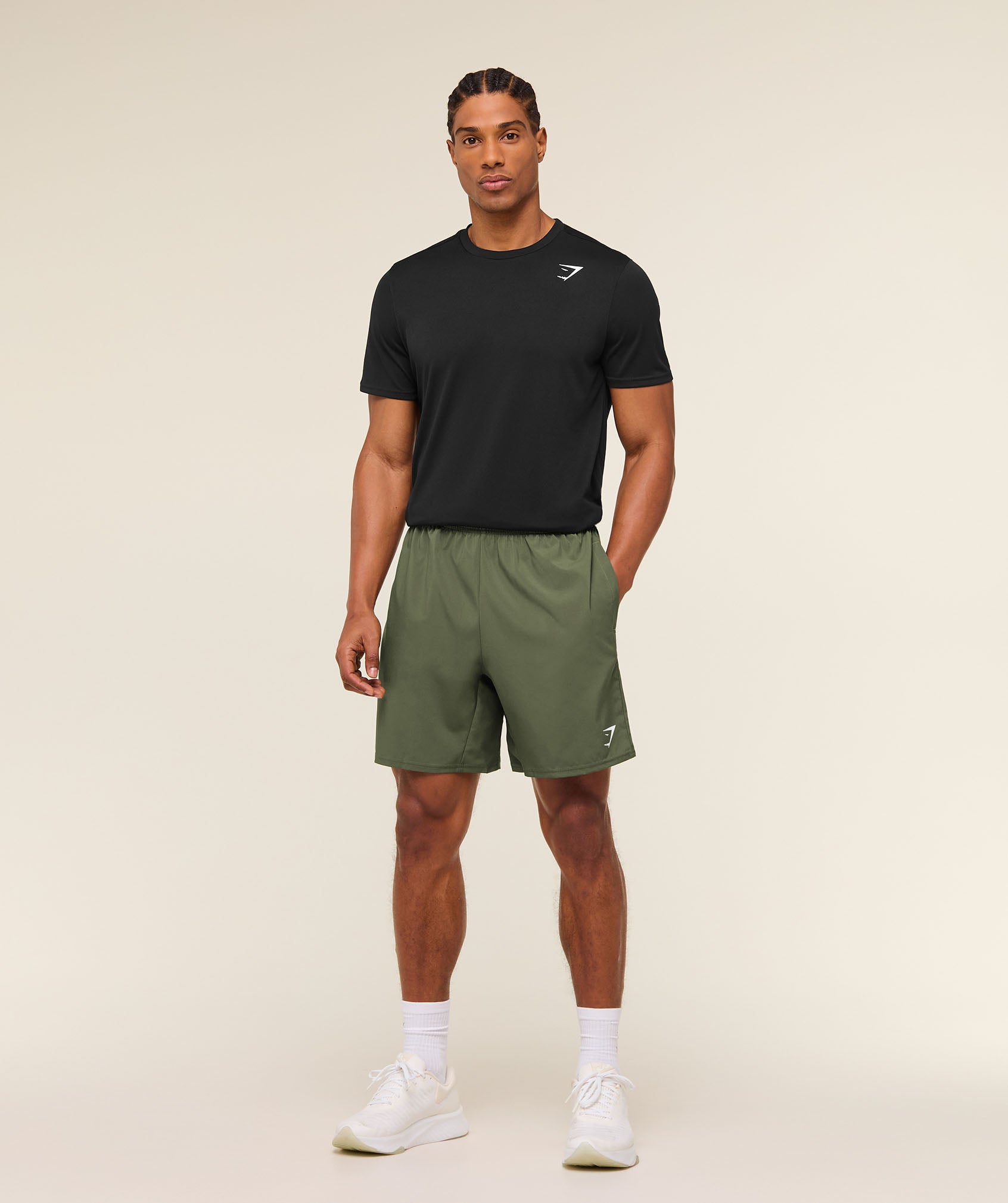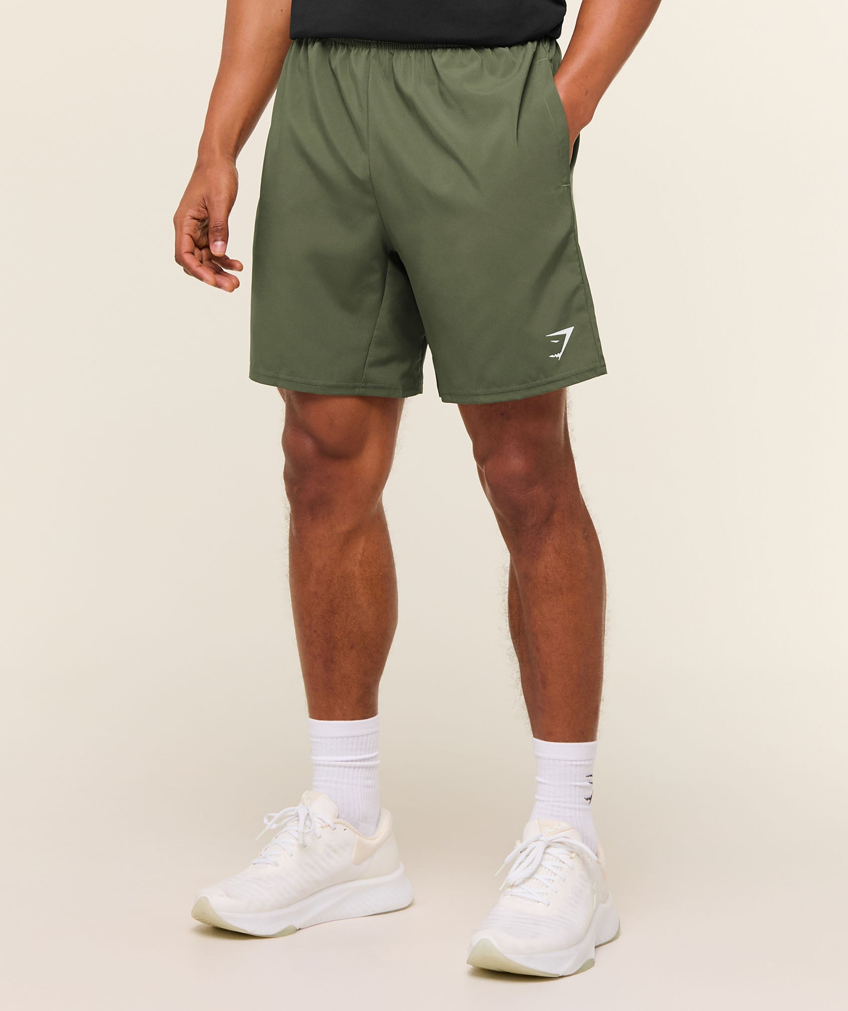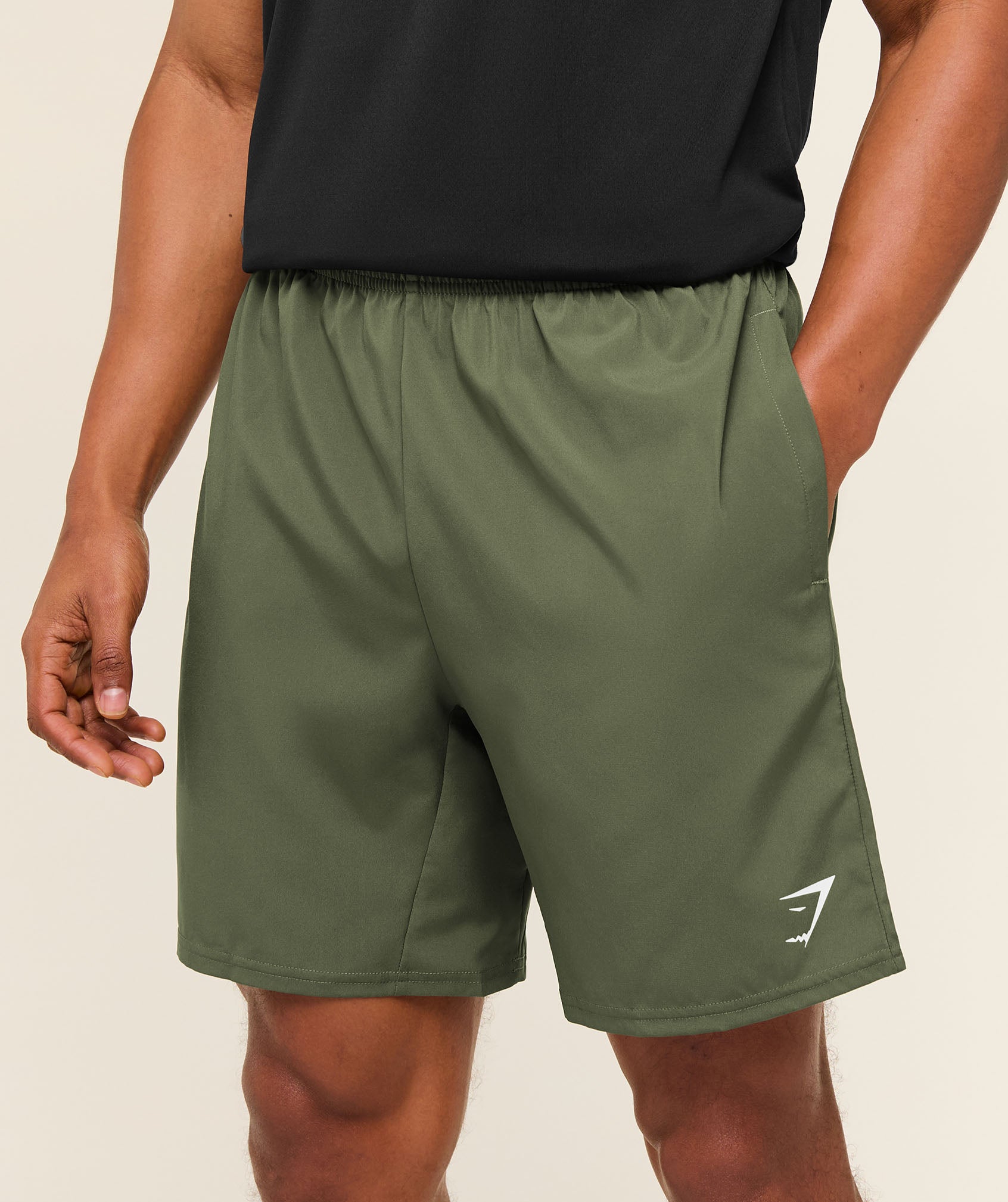– Slim fit- Woven short- 7” in-seam- Lightweight material- Sweat-wicking- Elasticated drawcord waistband- Open side pockets- Heat-sealed logo to thigh- 100% Polyester- Model is 6’0″ and wears size M- SKU: A2A1L-EBF1