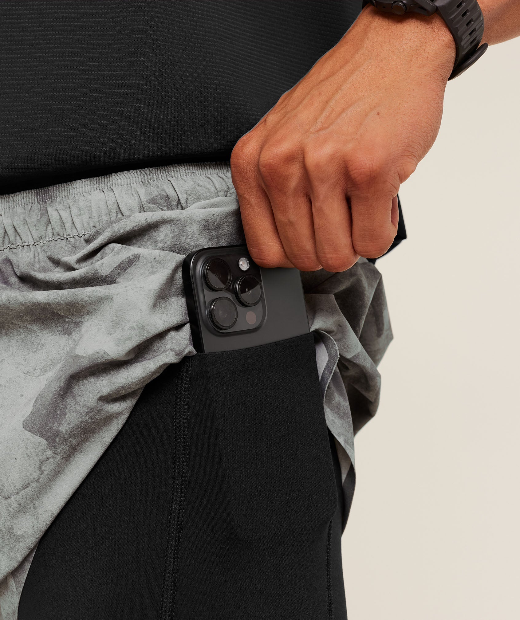 - Sweat-wicking inner shorts with side pockets