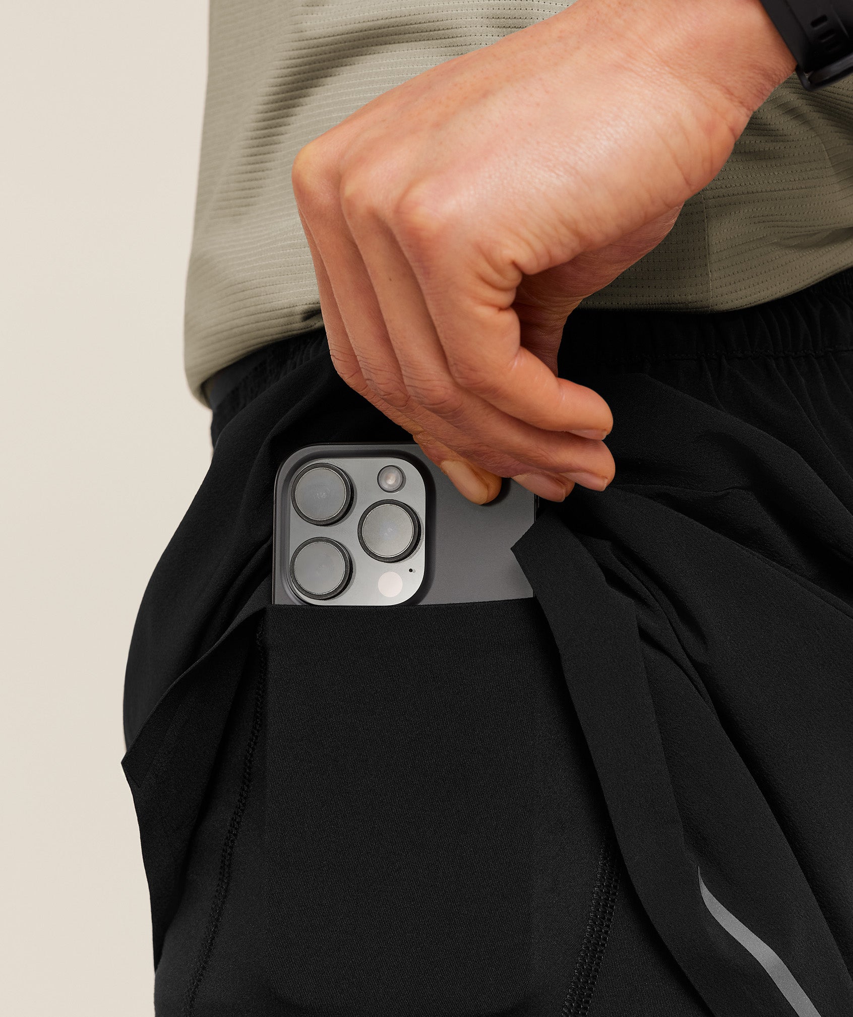 • Sweat-wicking inner shorts with side pockets