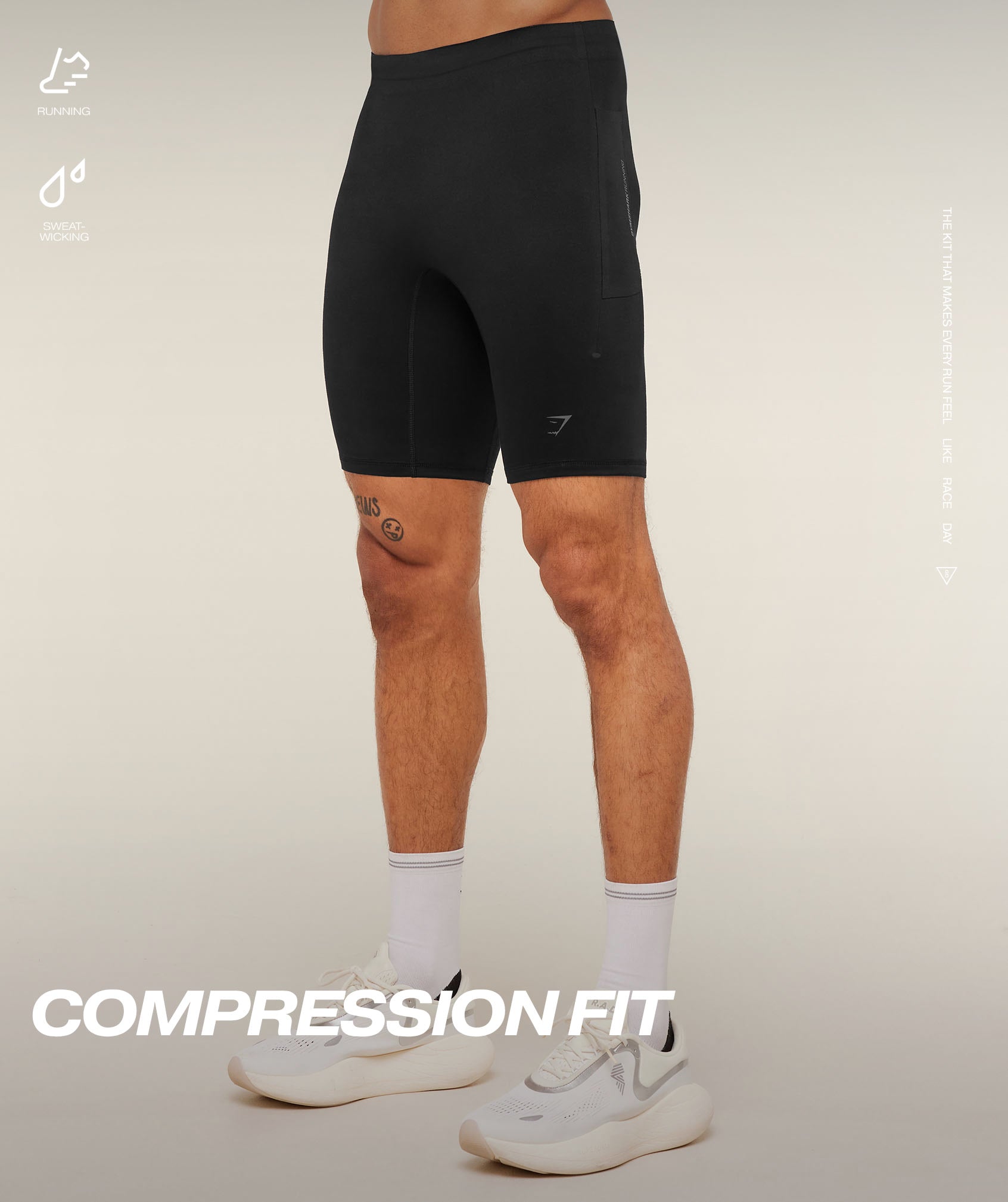Designed for running. These half tights are a compression fit and made from lightweight, sweat-wicking and stretchy fabric.